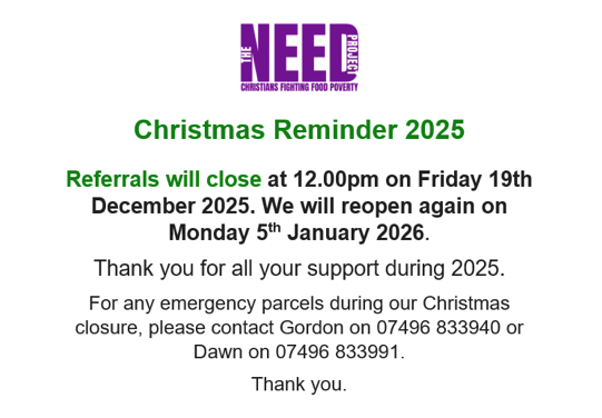 We offer different types of food parcels depending on the time of year - please select from below ...